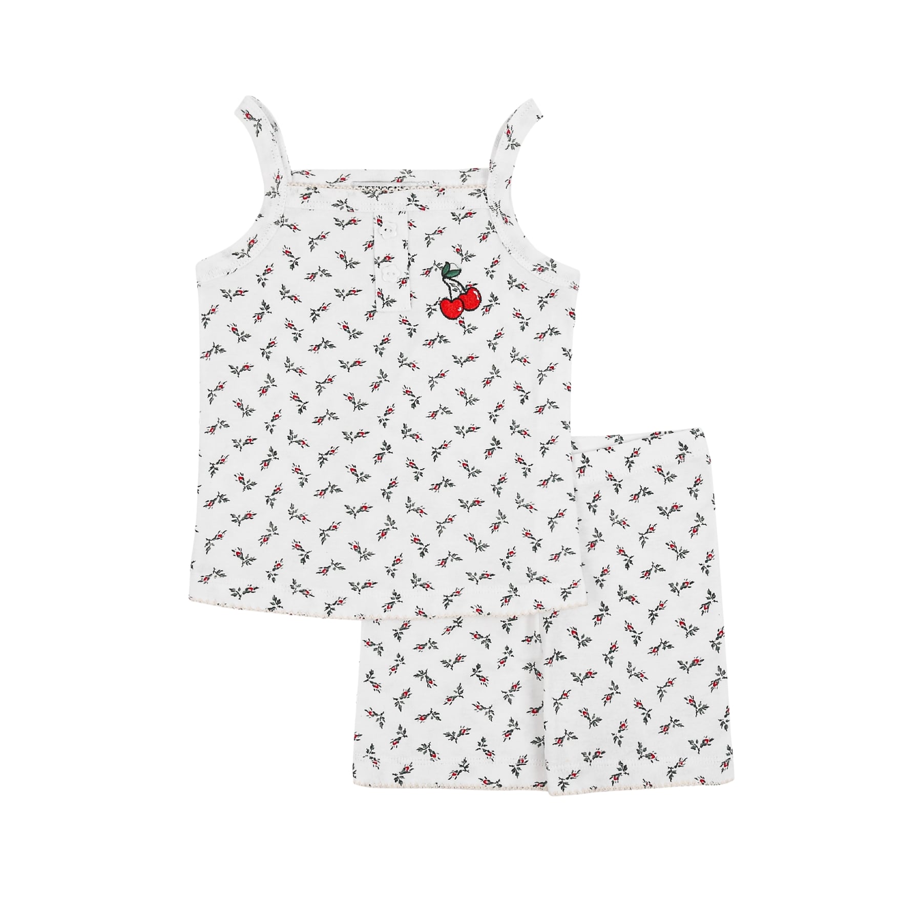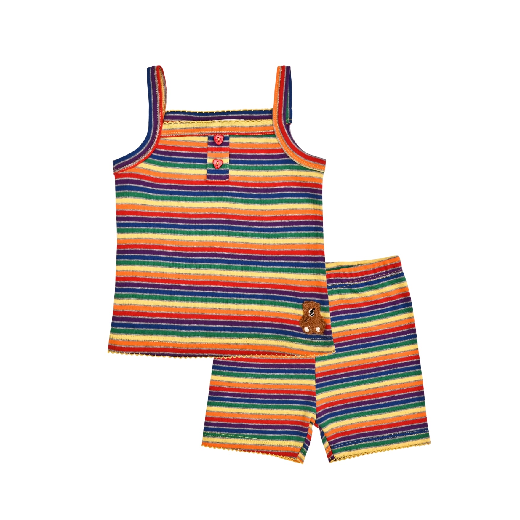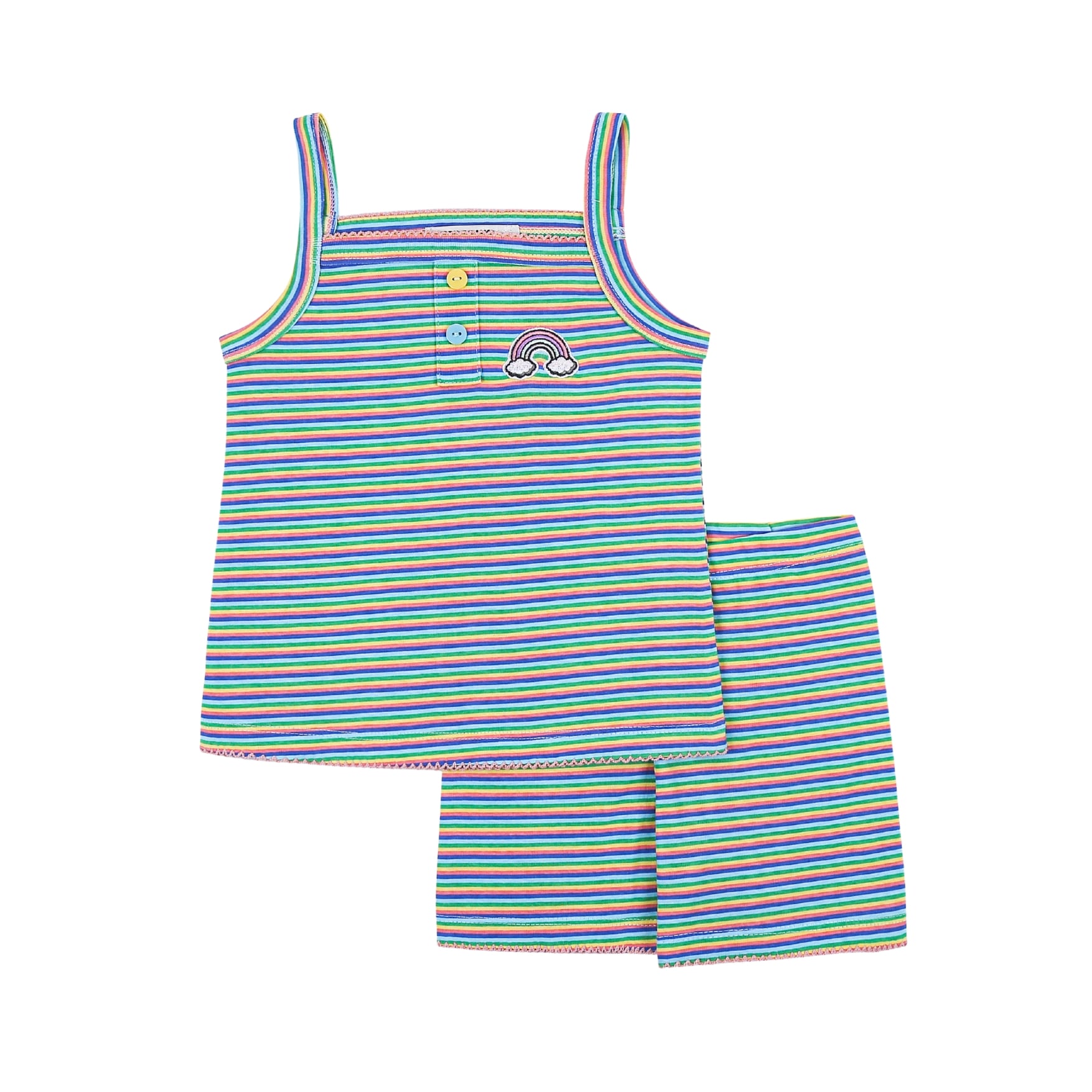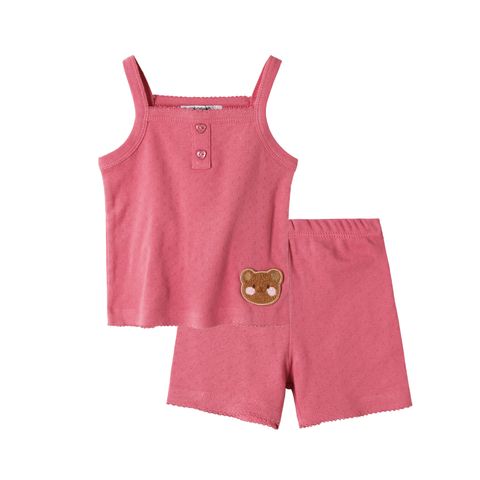 Được làm từ vải thoáng khí, set đồ đơn giản này sẽ giúp bé luôn mát mẻ cả ngày trong thời tiết nắng nóng. Màu sắc đẹp và hình thêu duyên dáng khiến set đồ này trở thành một lựa chọn tuyệt vời cho những buổi đi chơi thoải mái.